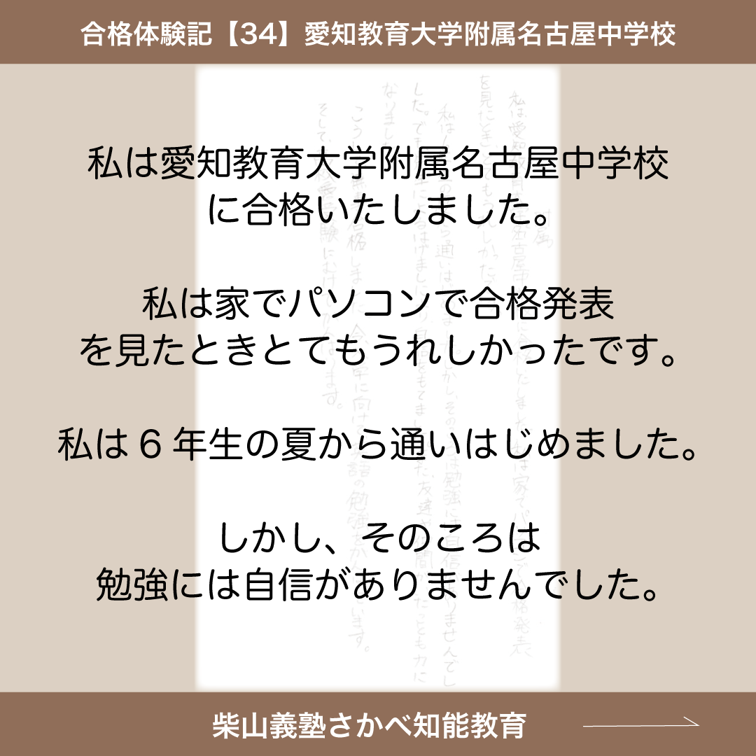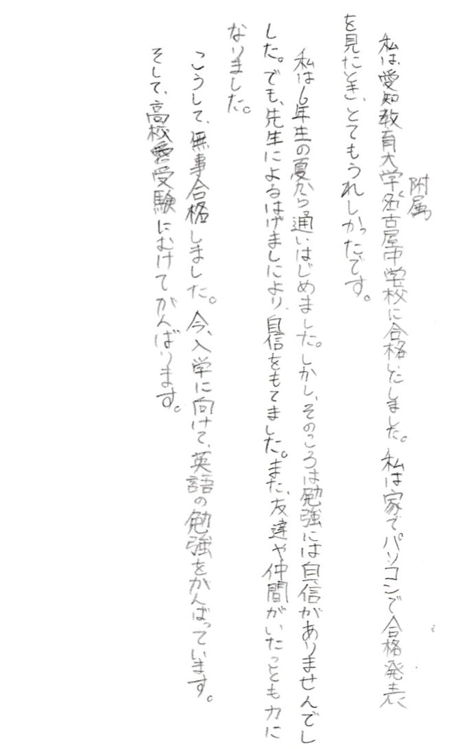 私は愛知教育大学附属名古屋中学校に合格いたしました。