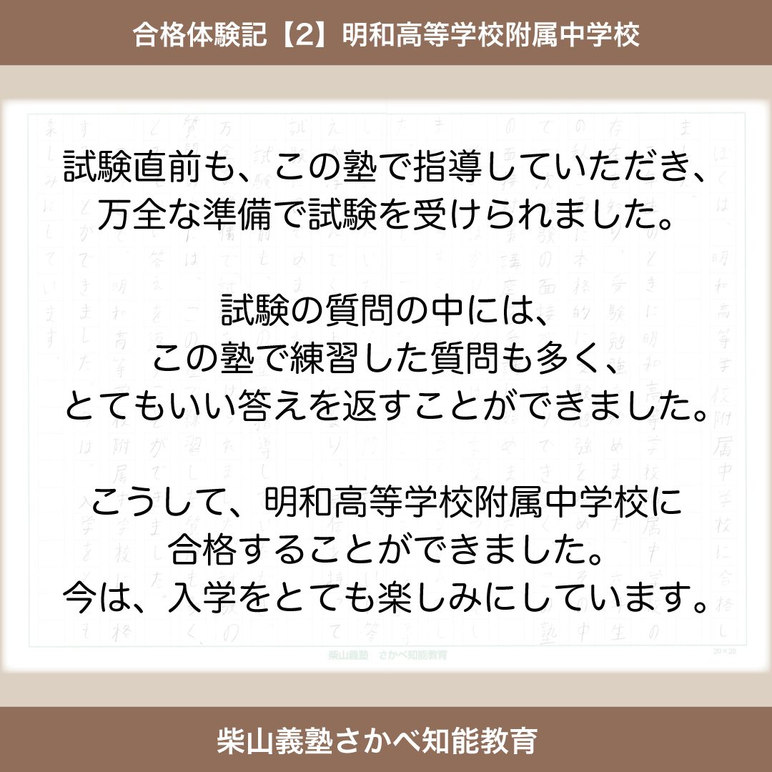 こうして、明和高等学校附属中学校に合格することができました。