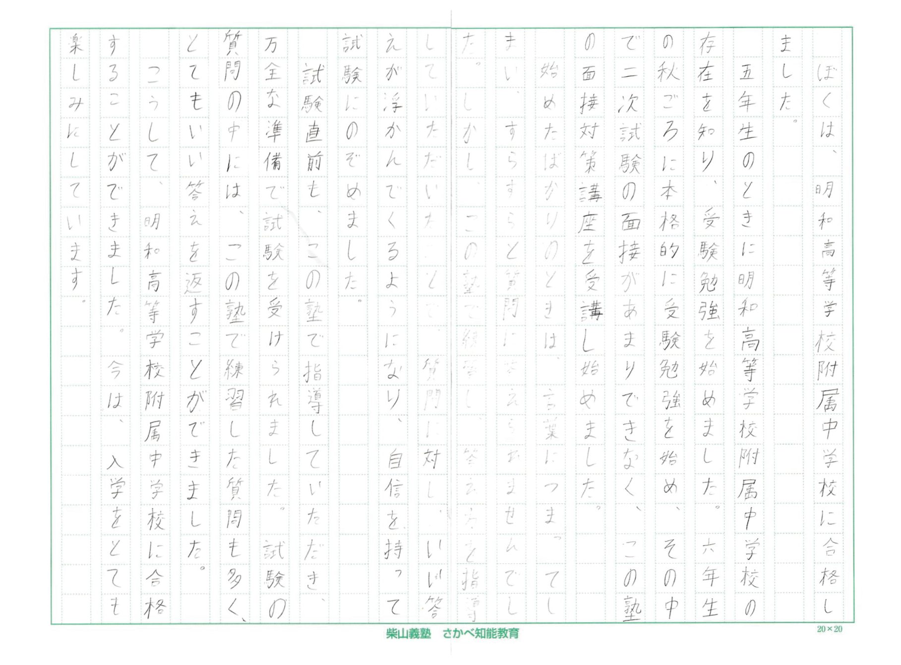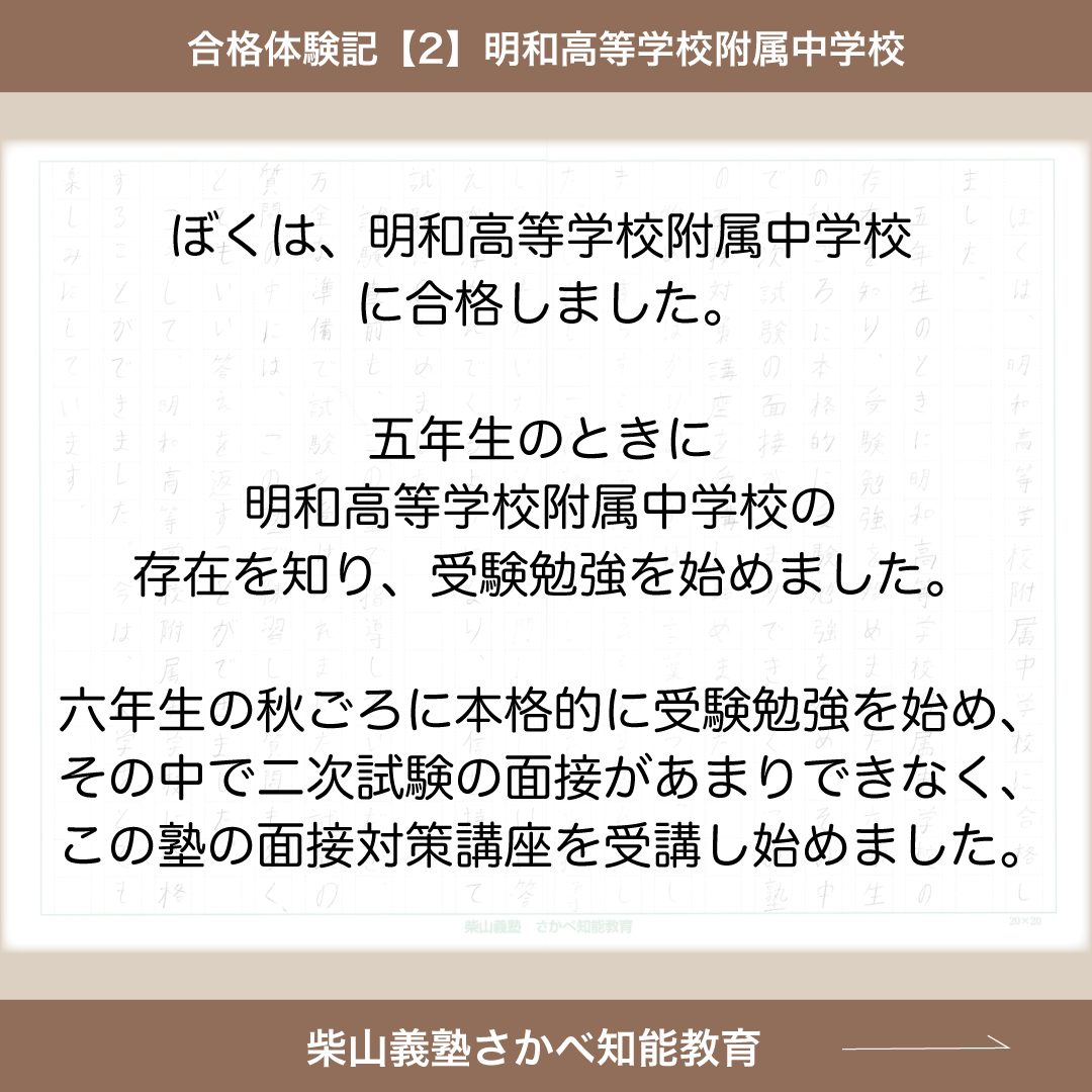 ぼくは、明和高等学校附属中学校に合格しました。