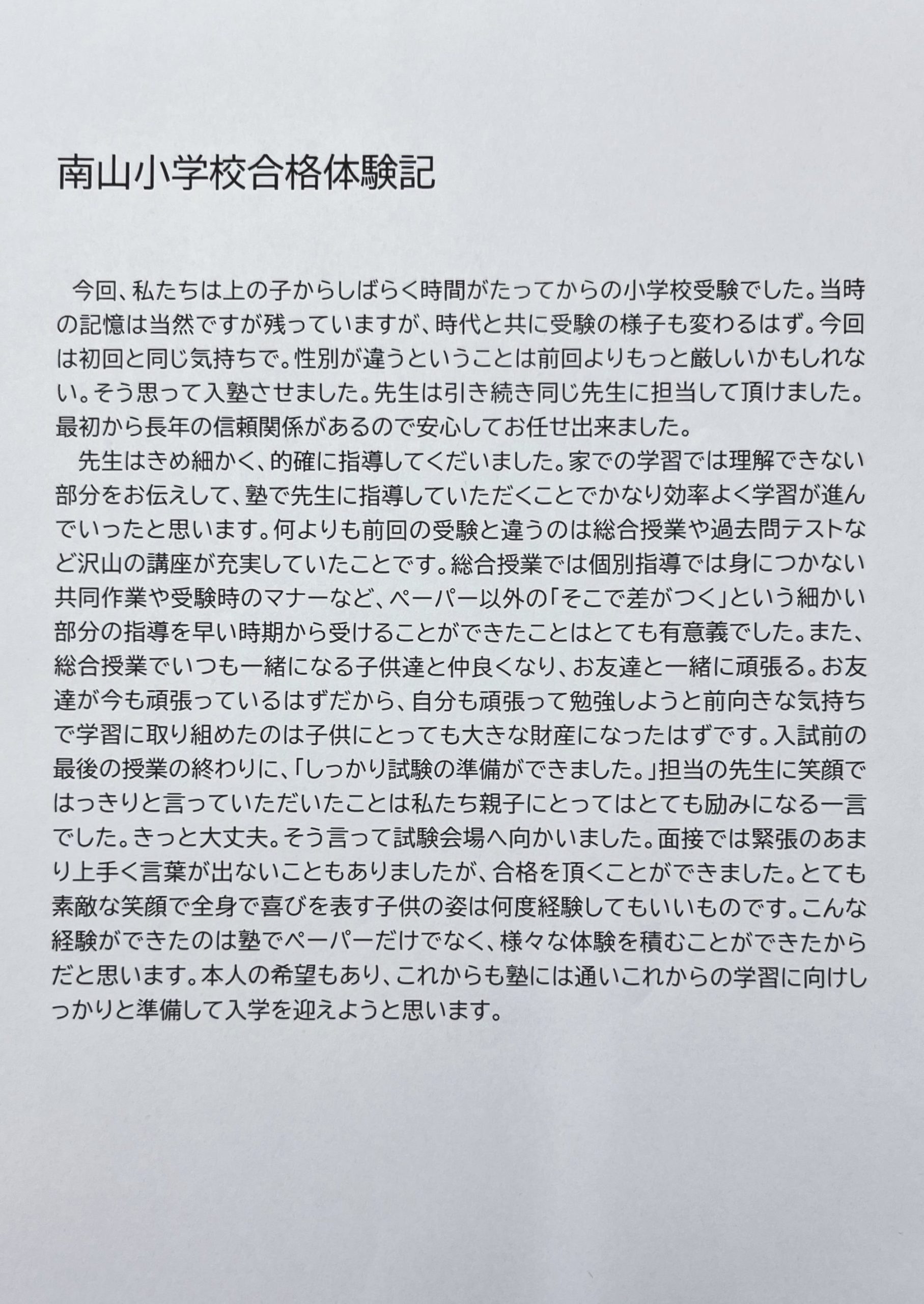 合格体験記(20)小学校受験 南山大学附属小学校 2025.12.24